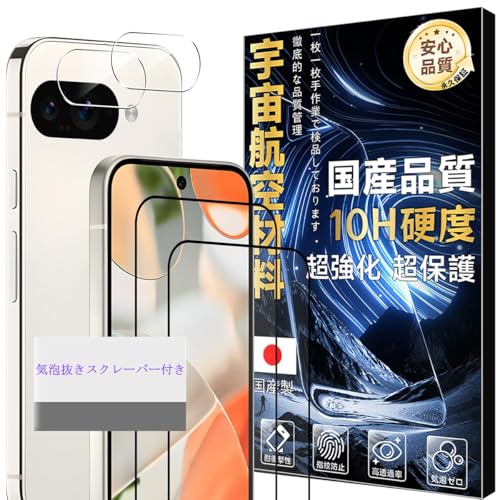 Google Pixel 9A対応の液晶・レンズ保護ガラスフィルムです。硬度10Hの宇宙航空材料で、指紋・飛散・スクラッチ防止機能を備え、超簡単に貼り付け可能。HDクリアで画質も鮮明です。