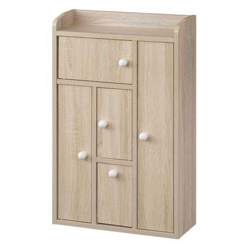 ぼん家具のトイレラックは、スリムでコンパクトな収納ソリューションです。幅45cm、奥行16.2cm、高さ71.2cmのサイズで、扉付きのフラップ扉デザインが特徴。トイレットペーパーや掃除用品のストッカーとして最適で、オーク材の美しい仕上がりが魅力です。