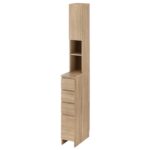 ぼん家具 ランドリー収納 スリム 幅20.1×奥行45×高さ183.7cm 薄型 ランドリーチェスト 隙間収納 引き出し タオル 洗面所 扉収納 オークの高価買取