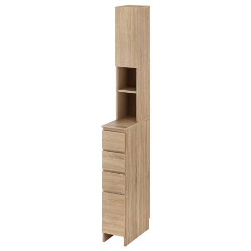 ぼん家具 ランドリー収納 スリム 幅20.1×奥行45×高さ183.7cm 薄型 ランドリーチェスト 隙間収納 引き出し タオル 洗面所 扉収納 オークの製品情報