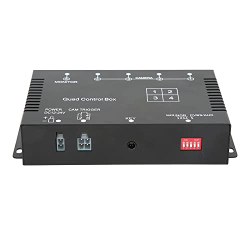 4チャネルビデオスプリッターは、1080P AHD対応でDC12V/24V車両に最適。左/右転換やバック表示自動切替に対応、学校バス・トラック・船舶など多様な車両で使用可能。
