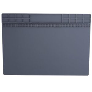 KooingTechのシリコンはんだ付けマットは、13.8×9.8インチの耐熱1500°F仕様。携帯電話やノートパソコンの修理に最適なグレーのマットです。
