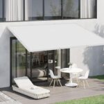 サンシェードオーニングは220x220cmの簡単設置タイプ。UVカット機能、撥水性、遮熱、断熱効果があり、ハトメと固定ロープ付き。パーゴラやカーポート、キャンプなどに最適な雨よけシェードです。