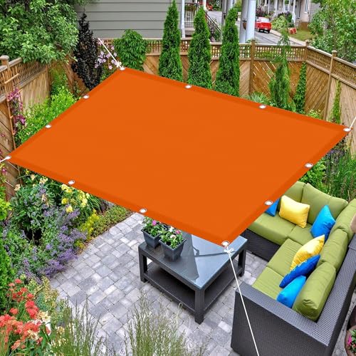 日除けシェードオーニング1.4×1.7m。防水素材で駐車場やベランダ、庭先に最適。目隠し効果あり。ハトメ付き、4×1.5mロープ付き。オレンジ色。
