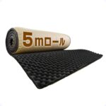 eモンズ吸音材は、5m×1m×25mmのロールタイプで波型設計。耐火・難燃性のラバーフォームを使用。粘着テープ付きで防音効果を発揮し、デッドニングやカーオーディオの制振、振動対策に最適です。