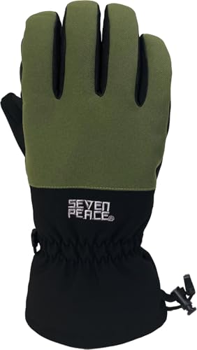 SEVEN PEACEのスノーグローブは、5本指デザインで防水・透湿・保温性に優れています。スキーやスノーボードに最適で、男女兼用のOLIVEカラー。Sサイズ対応の手袋です。
