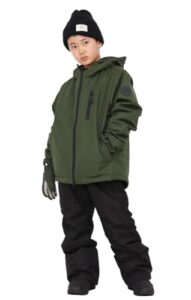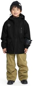 スノーボードウェア キッズ ジュニア 女の子 男の子 上下セット 超撥水YUK サイズ調節可 子供 耐水圧10000mm 撥水加工 ユック スキーウエア スノボ スノーウェア【yk25wi299bwc】 160cm カーキ/ブラック