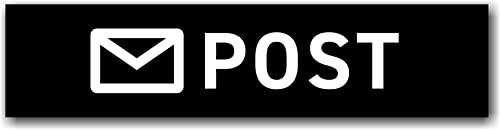 メールマーク+POSTのサインプレート、ブラック(文字色:白)。アクリル2層板でUV対策済み。レーザー彫刻、粘着テープ付き。サイズ150mm×35mm×1.5mm。スタイリッシュな郵便受け用のマークプレート。日本製。