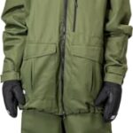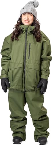 セブンピースのスノーボードウェア上下セット。耐水圧20000mm、透湿8000gの中綿入りで防寒・防水性抜群。男女兼用、OLIVE&OLIVEのMサイズ。スノボやスキーに最適なセットアップです。