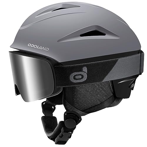 Odoland スキーヘルメット+スノーゴーグルセット ダイヤル式サイズ調整 スノーボードヘルメット メガネ対応 平面レンズ 防風 曇り止め 耐衝撃 UVカット 大人用 男女兼用 グレー Lの製品情報