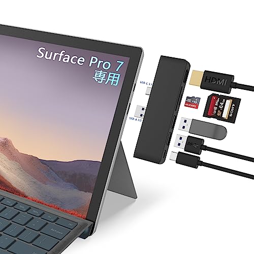 Surface Pro 7 USB ハブ 6-in-1 Surface Pro 7 ハブ 4K@30Hz HDMIポート + 2個 USB 3.0ポート + Type C ポート (オーディオとデータ) + SD&TF (Micro SD) カードリーダー 高速データ転送アルミニウム サーフェス pro7 専用 ハブの高価買取