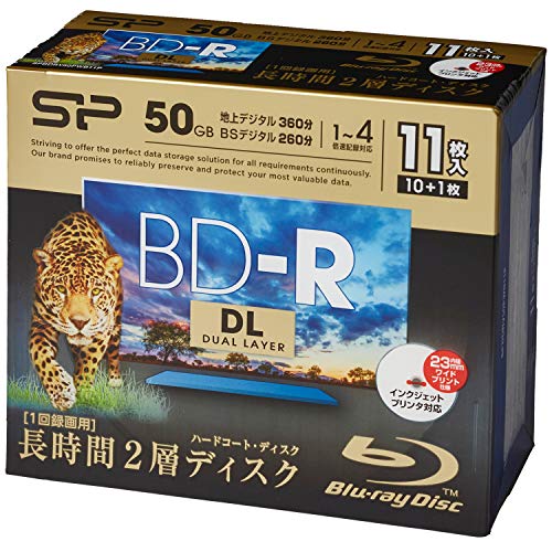 シリコンパワーのSP BD-Rは、50GB容量の4倍速録画対応メディアです。11枚パックで、ホワイトプリンタブル仕様のため、印刷も可能で便利です。