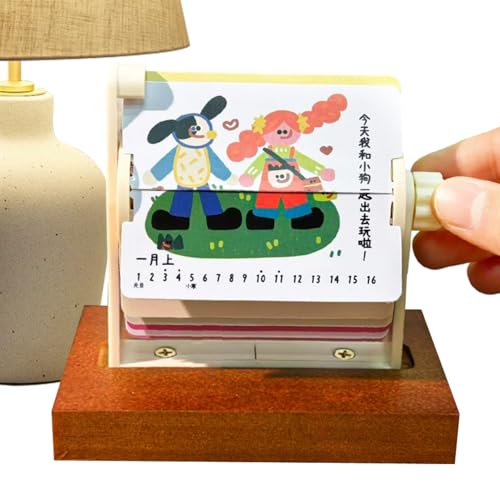 マンスリーデスクカレンダー 2026 | ページ 回転 式 木製 ベース 月間 と 日付 表示 | 午年 デスクトップ インテリア 装飾 – ホームデコレーション、オフィス、学校、学生寮、アパート、新年の休暇、子供や女性向け