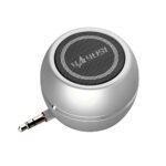 HelloGOのポータブルミニスピーカーは、スマホやPC、iPad、iPodに適合。ステレオミニプラグ仕様で多機能、携帯防塵デザイン。シルバーのスタイリッシュな外観が特徴です。