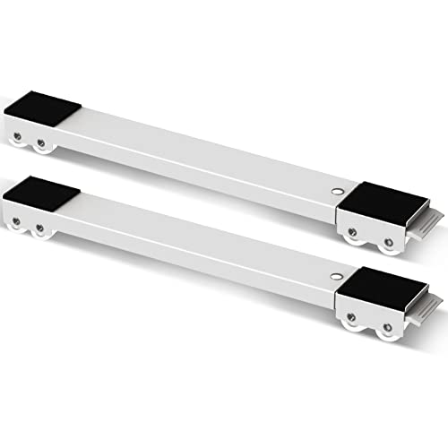 SPACEKEEPER洗濯機台は、ブラケット付きの簡易式冷蔵庫置き台で、キャスター付きで移動が容易。長さ調整可能(45.7~71.1cm)、高耐久、減音防振静音設計。耐荷重300kg、薄型4cmのホワイト。