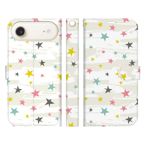 Ruuu iPhone Air対応の手帳型ケース。星柄のカラフルデザイン、かわいい&おしゃれな印象。財布型でカード収納、スタンド機能付き。ワイヤレス充電対応、全面保護でギフトにも最適。
