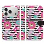 Ruuu iPhone 17 Pro 対応 手帳型 スマートフォン iPhoneケース カバー フラミンゴ カラフル ペイント ボーダー柄 トロピカル 動物 原宿系 イラスト 可愛い おしゃれ かわいい きれい 個性的 ユニーク 派手 目立つ くちびる パイナップル 手帳 フリップ型 スマホカバー 財布型 二つ折り 携帯ケース カード収納 スタンド機能 ワイヤレス充電対応 ギフト プレゼント 高価買取中
