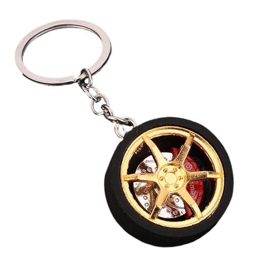 車のホイールやタイヤを模したキーホルダーで、クリエイティブなデコレーションアイテム。車愛好家や男性におすすめのオリジナルデザインです。