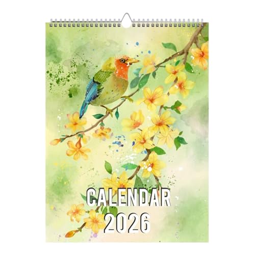 バードカレンダー2026は、花と鳥をテーマにした12ヶ月の壁掛けカレンダーです。リビングルームやキッチン、書斎、寝室に最適なナチュラルデコレーションとしてお使いいただけます。卓上でも使用可能なプランナーです。