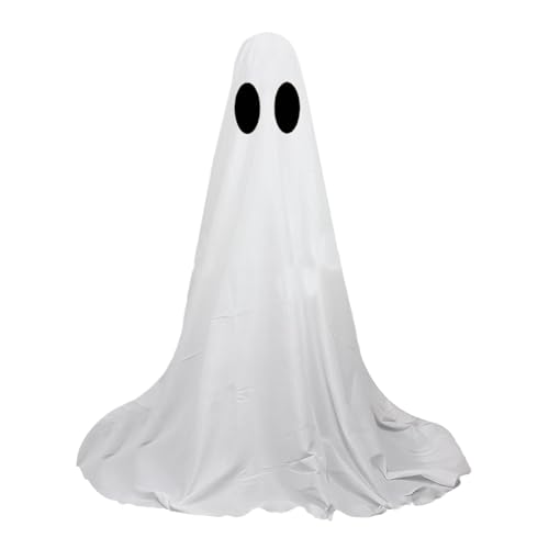屋外用の白い布のゴースト装飾。ハロウィーンの雰囲気を盛り上げるLEDストリングライト付き。お化け屋敷にぴったりの不気味な演出。