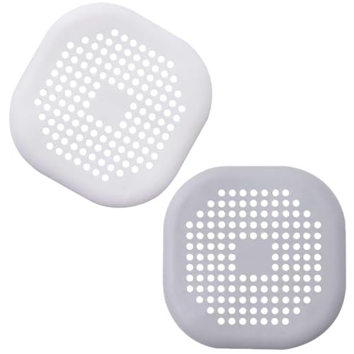 Pagabach スクエアシリコンヘアキャッチャー 排水口カバー シャワーヘアストッパー用 吸盤付き バスルーム バスタブ キッチン グレー ホワイト 2個パックの高価買取ITEM