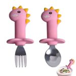 Seaparkのステンレス鋼製のベビー用フォークとスプーンは、かわいい恐竜のハンドルデザインが特徴で、安全性に配慮されています。
