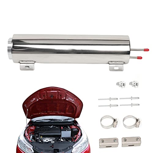 Mechesa クーラントリザーバータンク | ユニバーサルカーラジエータークーラントタンク | 車の改造アクセサリーオーバーフロータンク研磨ステンレス鋼ラジエーターオーバーフロータンク冷却ケトルステンレス鋼貯水池、自動車改造アクセサリーの製品情報