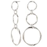 大振りのメタルリングを3連でデザインしたツイストピアス。揺れるラウンドフープがエキゾチックな印象を与えます。日本製で、シルバー仕上げのレディースアクセサリーです。