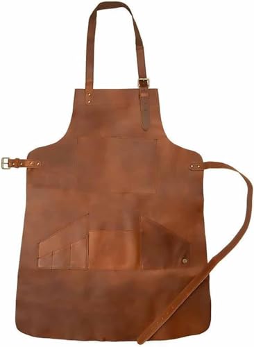 SUNCNの溶接エプロンは、耐熱性と難燃性を備えた牛革製。プロメカニックや木工作業に最適で、男女兼用のデザイン。ポケット付きで機能性も高い。