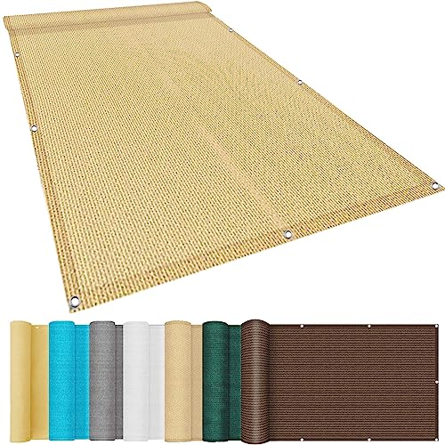 日よけシェード(3.2×6.5m)は遮光率95%で紫外線をカット。断熱効果があり、風通しも良好。家や庭下、屋外での使用に最適なイエローの目隠しシートです。