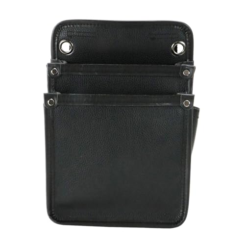 SK11の黒い腰袋SSL-NB-14は、2段の薄型設計で、潰れやすいジャバラ構造を採用。レザー調素材とブラックメッキ金具を使用し、耐久性とスタイリッシュさを兼ね備えたアイテムです。