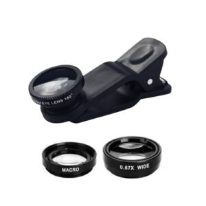 携帯電話カメラレンズキット、3in1 電話レンズセット スマホ用カメラレンズ 電話レンズキットのクリップ 電話カメラレンズキット 収納袋付き ほとんどのスマートフォン用(180°魚眼レンズ+ 0.67倍広角レンズ+ 10倍マクロレンズ)3-in-1電話レンズセット クリップオン電話レンズ