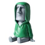 / Famimueno スマホ スタンド モアイ ホルダー 卓上 おもしろ かわいい スマートフォン 携帯 電話 (灰色モアイ/緑パーカー)