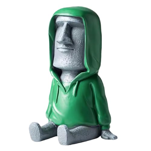 Famimueno スマホ スタンド モアイ ホルダー 卓上 おもしろ かわいい スマートフォン 携帯 電話 (灰色モアイ/緑パーカー)