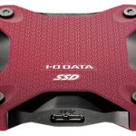 I-O DATAのUSB 3.1 Gen 1対応ポータブルSSD SSPH-UT240Rは、容量240GBで高速データ転送が可能。軽量で持ち運びに便利な赤色のデザイン。