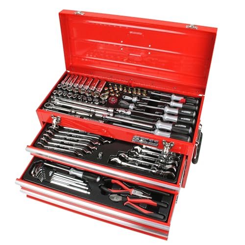 SK11整備工具セット133点組は、各種メンテナンスに対応した多機能な工具が揃ったセットです。レッド色のデザインで、持ち運びや収納も便利。SST-16133RE型番です。