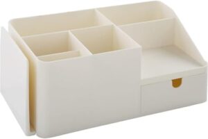 OLFILMD デスクオーガナイザー 多機能 卓上収納ボックス 大容量 文房具化粧品用 引き出し付き 便利な分類収納 おしゃれ収納 リモコンラック 小物入れ ベージュ (L,ベージュ)