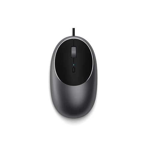 SATECHI C1 有線 USB-C マウスは、1.5mケーブルと光学式センサーを搭載。DPI調整可能で人間工学デザイン。MacBook、ノートPC、iPadに対応。スペースグレー。