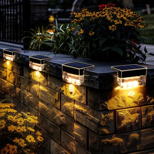 SolpexJP ソーラーデッキライトは、IP67防水設計で屋外階段やフェンスに最適。4セットのウォームホワイトLEDライトで、庭やパティオを優しく照らします。