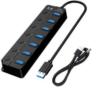 オーディオファン USB ハブ 7ポート usb 3.0 Hub USB拡張 USBケーブル 5Gbps高速転送 独立スイッチ付 セルフパワー/バスパワー とセルフパワー両用 約22.6*7.1*2.3cm