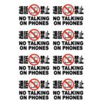Mehrondoの通話禁止ステッカー8枚セット。サイズは72x51mmで、日本製の高品質な製品です。職場や公共の場でのマナー向上に最適なアイテムです。