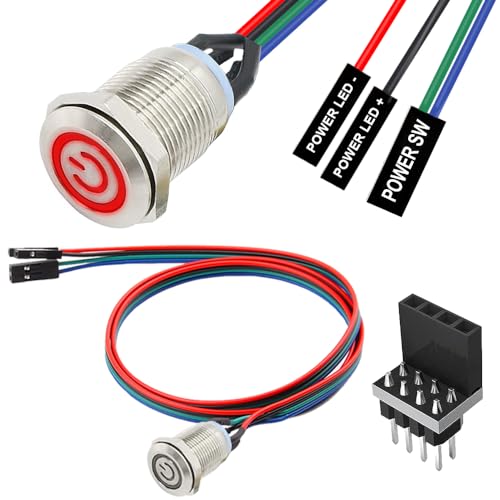 Xiatiaosann 12mm金属ボタンシャーシスイッチ。PC用DIYスイッチ、LED電源ボタン、ATXサービス、1から2のディバイダー(赤)付き延長コード。