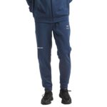 デサントのロングパンツ、ソフトウォームテーパードジョガーパンツ。ストレッチ性が高く、保温性に優れています。トレーニングやランニングに最適な一着。サイズはL、カラーはネイビー(NV)。