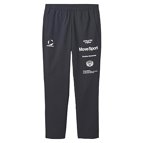 ムーブスポーツのAIRY TRANSFER TAIKYUオーセンティックロゴロングパンツST5SPZ22M_BK00_Lは、軽量で通気性に優れた素材を使用し、快適なフィット感を提供するスポーツウェアです。デザインはシンプルでありながら、ロゴがアクセントになっています。