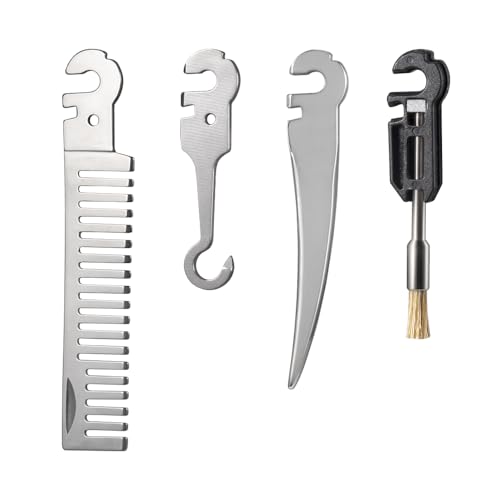 Roxon FT08 フレックス マルチツール用の独自アクセサリ4点セット。コーム、カジキスパイク、ミニブラシ、フックが含まれ、アウトドアやキャンプに最適です。