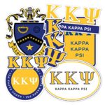 Kappa Kappa Psiの標準ステッカーシートは、ノートパソコンやウォーターボトルに最適なデカールがフルシートで提供されています。耐水性で、高品質なビジュアルが特徴です。
