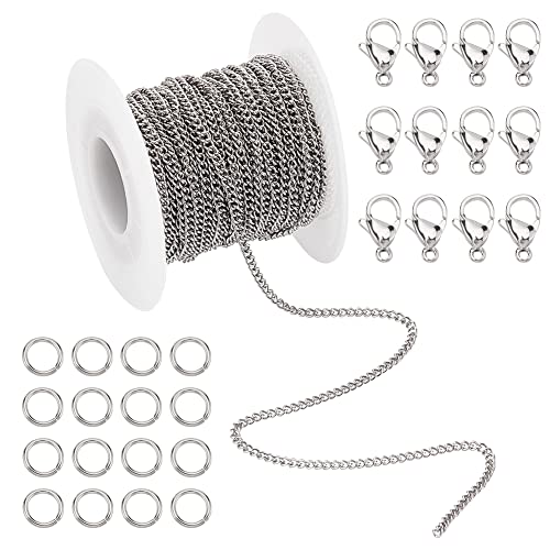 PH PandaHallの304ステンレス製アズキチェーンは、サイズ2.7x2x0.5mmで、カニカンや留金具、マルカン、ジャンプリングを含むジュエリー用パーツです。手作りアクセサリーに最適です。