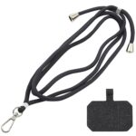 PLATAのダークグレーのネックストラップは、スマートフォン用のストラップで、ナイロン素材を使用。肩掛けや首掛けに対応し、長さ調整が可能で取り付けも簡単です。