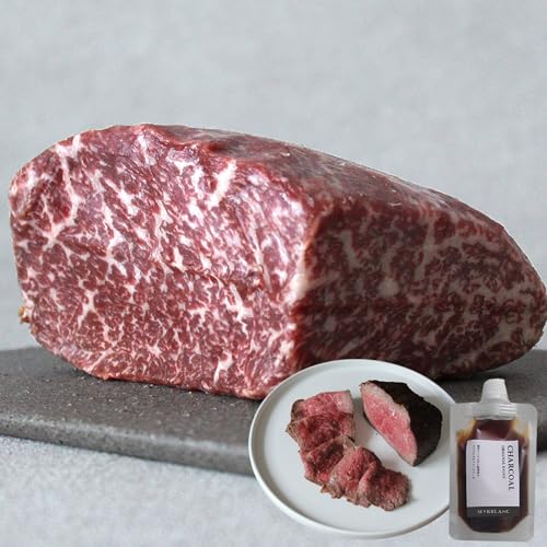 熟成黒毛和牛100%の極上赤身ブロック500g。ミシェランシェフ直伝のローストビーフ焼き方とオリジナルチャコールソース付き。旨味成分最大4倍で冷凍配送可能。高級お取り寄せや贈り物に最適。