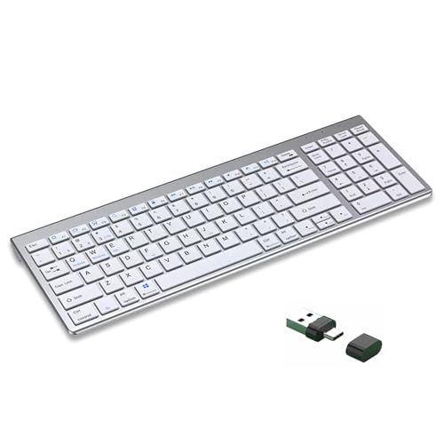 Arteck 2.4G ワイヤレスキーボード日本語配列 無線ステンレススチール 軽量 フルサイズキーボード テンキー付き コンピューター、デスクトップ、PC、ラップトップ、Surface、スマートテレビ、Windows11/10/8/7、Vista、XPとの交換性あり 充電式電池内蔵
